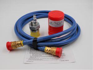 With this complete package, you will be able to bleed rotor brakes faster, by yourself, and if using our Hydra-Pro, less frequently. This is due to the Hydra-Pro’s filtered fluid prolonging the life of the hydraulic internals. What’s included? A Bell 205 / 206 / 212 / 407 / UH1 rotor brake servicing bleed adapter, Hydra-Pro servicing pump (10 micron), and 10’ hose with quick disconnect couplers that meet MIL-C-4109. The unique adapter has a push button bleed valve, and an anti-emulsification tube that also acts as a volumetric spacer to prevent over-servicing, and the resulting mess when removing it from the master cylinder. This enables one person to bleed the brake and leave the master cylinder serviced to “full” without any mess. It will work with any 125 max psi pump, but was designed to be used with our Hydra-Pro (Included).